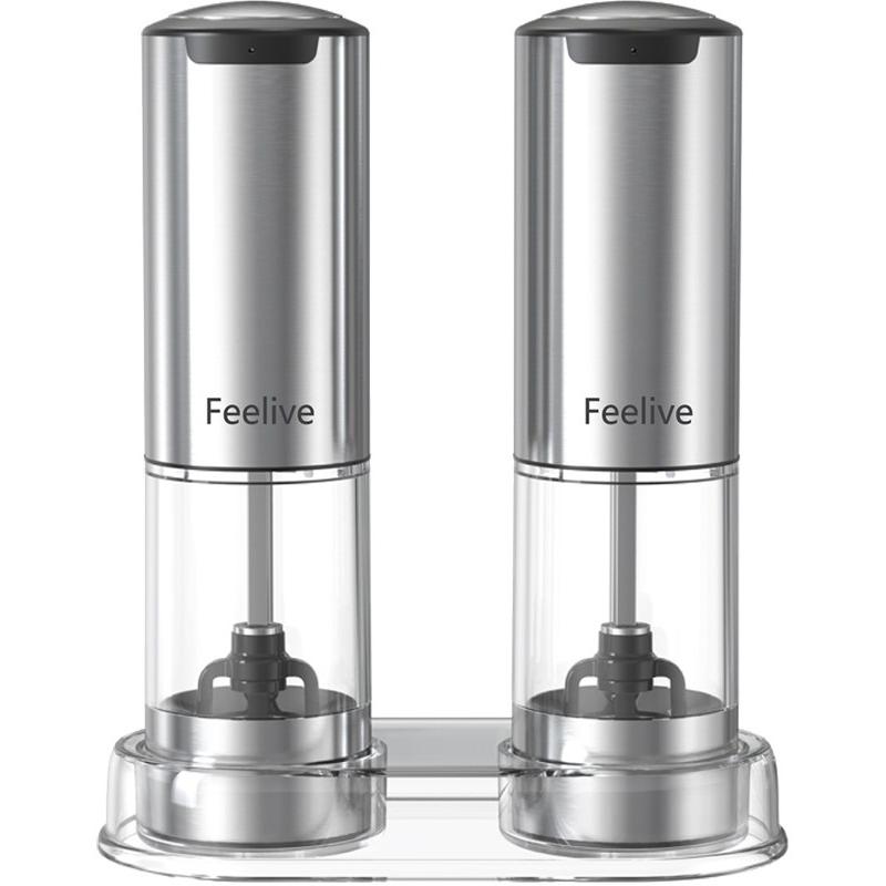 •Description: Feelive Rechargeable Pepper and Salt Grinder set 2 Pack with Stand